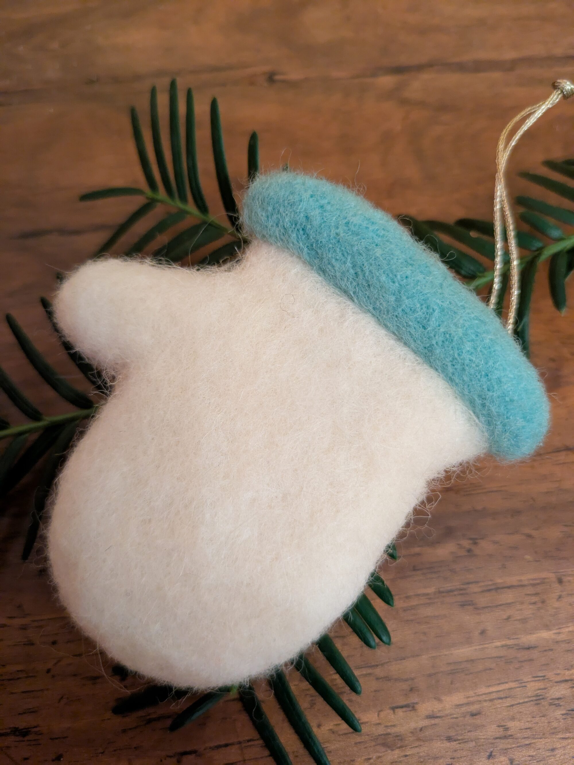 Vous réaliserez une adorable petite moufle blanche à suspendre. Vous pourrez choisir la couleur de sa bordure.